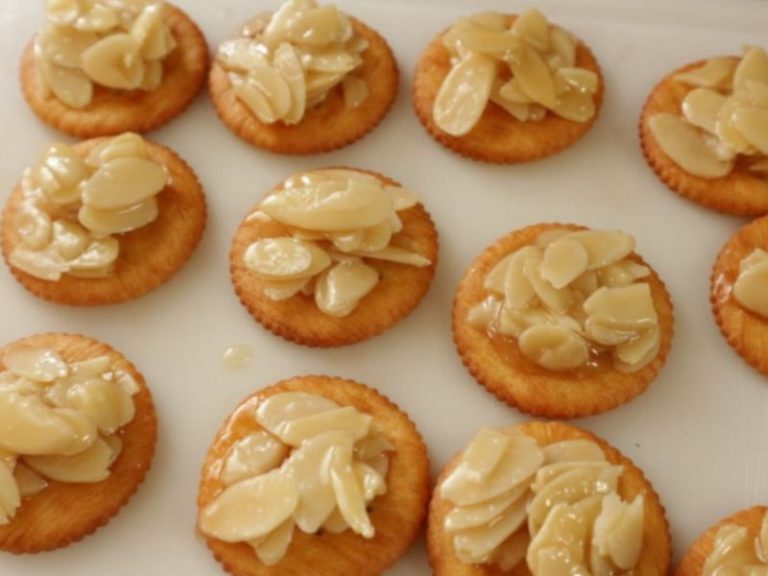 Arrange the crackers on a tray and spread the mixture from Step 2 over each cracker.