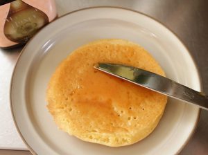 6. Spread Manuka honey on the inner side of another pancake and sandwich it over the filling. Wrap the dorayaki in plastic wrap and let it