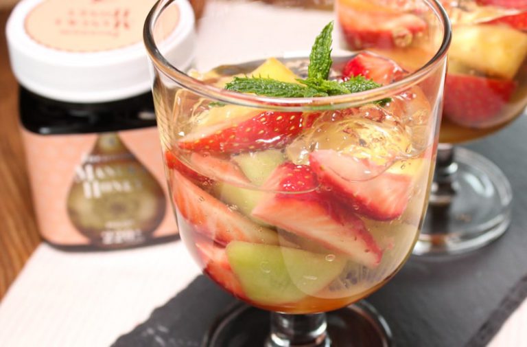 of sparkling wine, and the sweetness of Manuka honey harmonize beautifully with the tartness of the fruits. Its jewel-like sparkle makes it a photogenic treat!