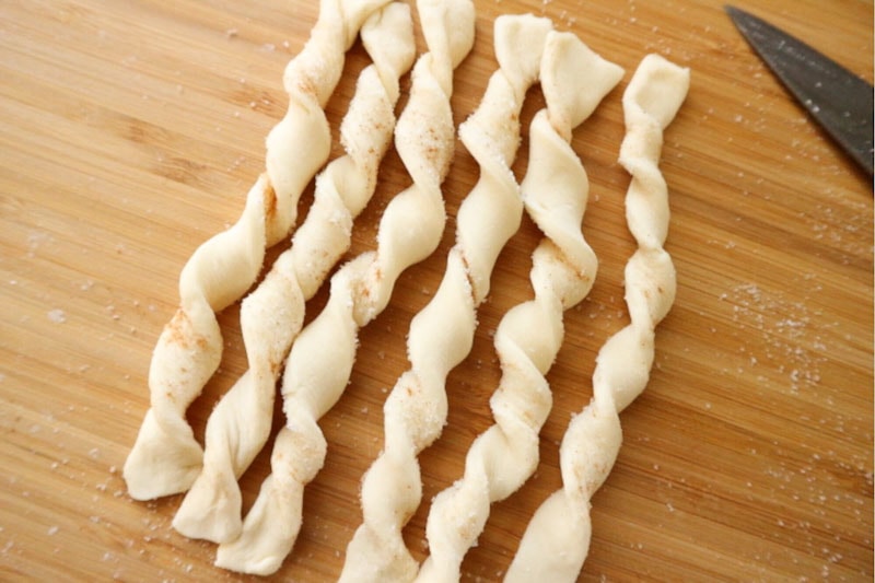 2. Twist the strips and bake in the oven at 190°C for about 10 minutes.