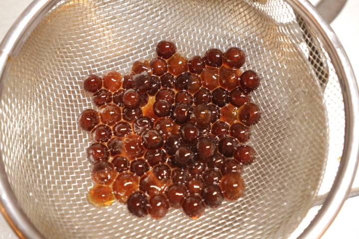 6.Add the tapioca to a glass, pour the tea mixture from Step 5 over it, and serve.