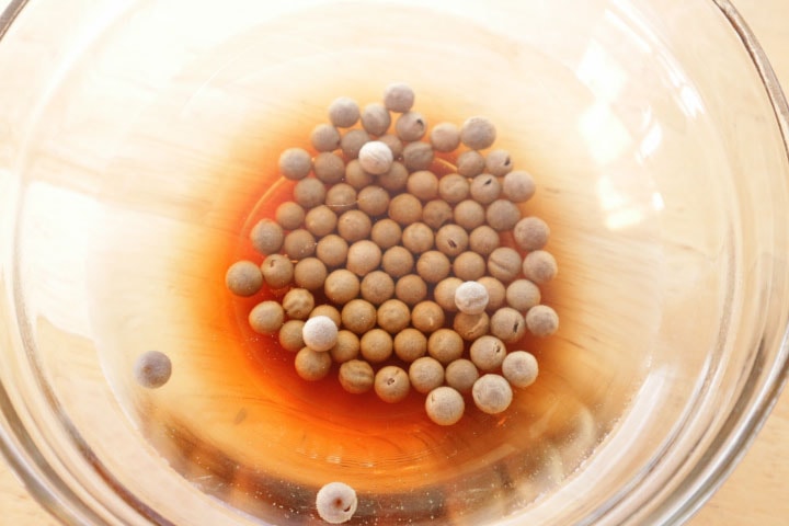 1. انقعي اللؤلؤ الأسود في كمية وفيرة من الماء طوال الليل ليكتسب الملمس المثالي.