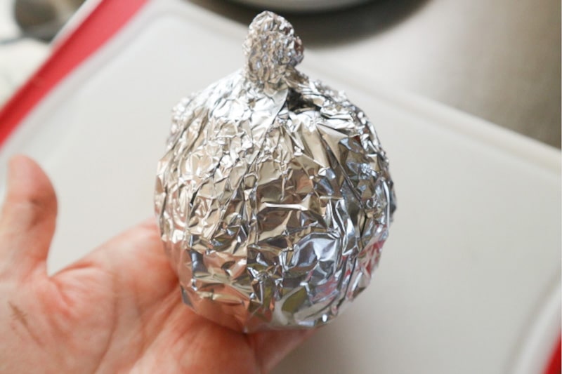 4. Wrap the apple tightly with the aluminum foil and bake in the oven at 190°C for about 30–40 minutes.