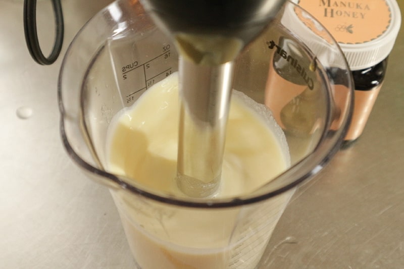 2. Combine the cooked sweet potato from Step 1, warmed milk, and Manuka honey in a blender. Blend until smooth.