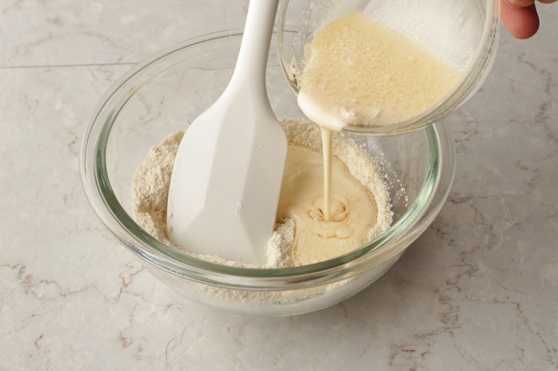 Add the ingredients A to the flour mixture and knead into a cohesive dough.