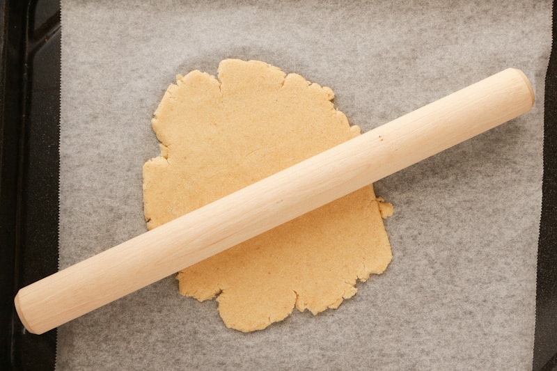 تفرد العجينة بسماكة 5 مم وتُقطّع دوائر بقطر 6 سم. تُخبز في فرن مُسخّن مسبقًا على 170°م لمدة 12–15 دقيقة، ثم تُترك لتبرد.