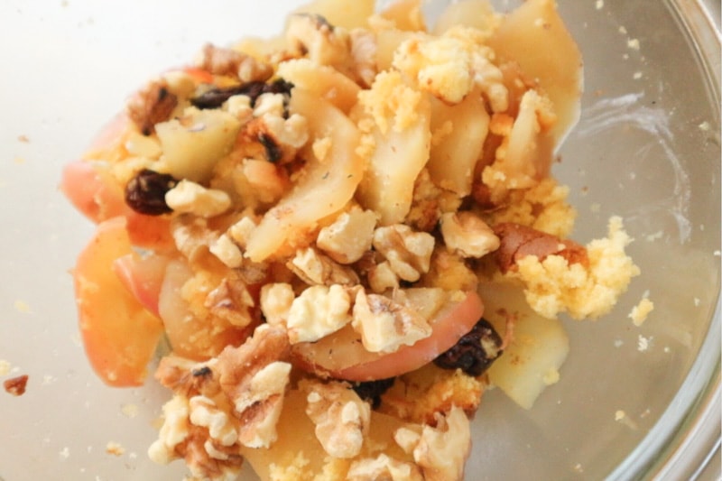 تُضاف مكوّنات الخليط (A) إلى التفاح الساخن وتُخلط برفق.