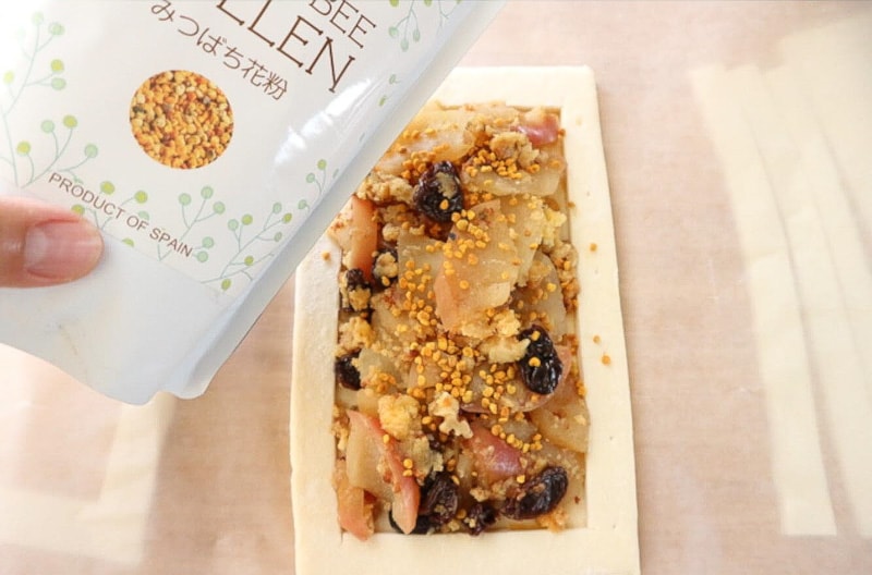 6. Spread the mixture from Step 2 and sprinkle bee pollen on top.