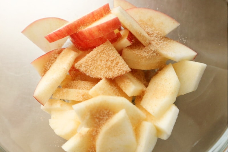 Place the apples and cane sugar in a microwave-safe bowl, cover with plastic wrap, and microwave at 500W for about 4 minutes.