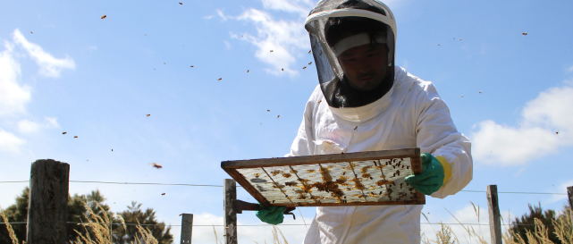 Our beekeeping process is led by a Japanese experienced beekeeper with over 40 years of overseas experience and permanent residency in New Zealand.  Alongside small-scale beekeepers who inherit his passion, they employ delicate techniques and a strong craftsman spirit. They adhere to their own strict standards from beekeeping to harvesting.